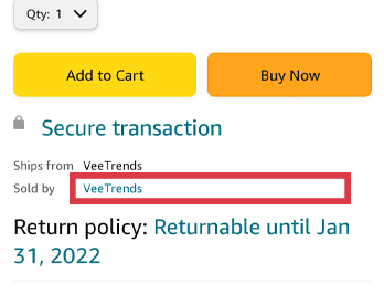 برای اطلاع از اینکه محصول مورد نظرتون توسط فروشنده معتبری به فروش می رسد یا خیر، کافی است در قسمت راست صفحه روی گزینه sold by کلیک کنید و صفحه فروشنده و امتیازهای داده شده به این آن را در ۱۲ ماه اخیر مشاهده کنید. این امتیاز باید بالای ۸۰٪ باشد تا این محصول توسط ایگرد خریداری شود.